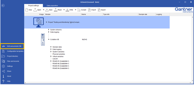 Run GI.bench and navigate to Edit Sensor/Actor DB from the left-hand menu.