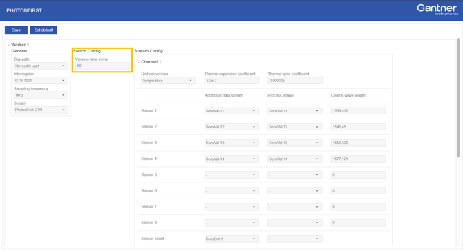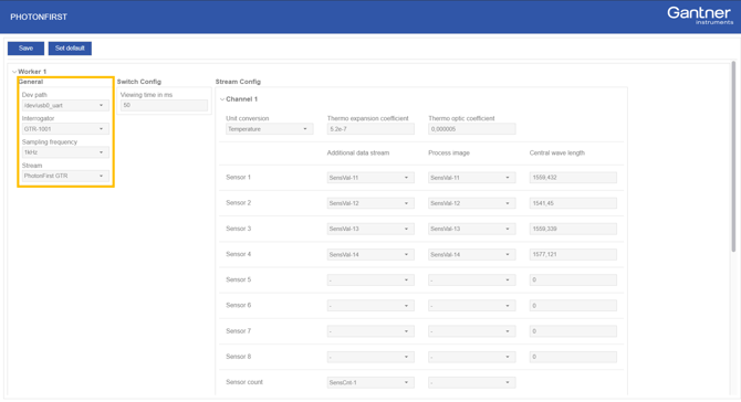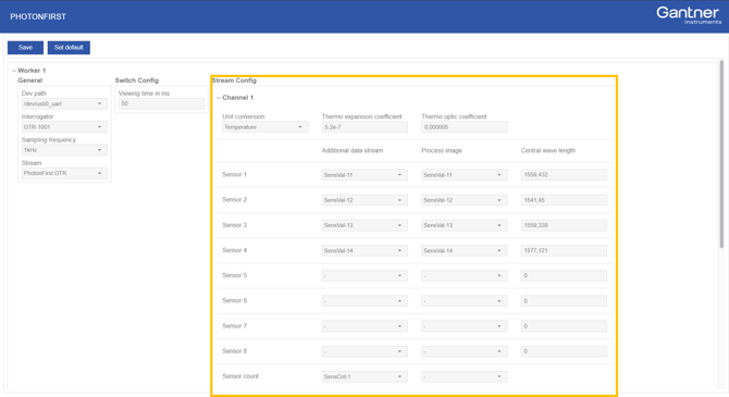 In the Stream Config section, the individual channel(s) and sensor mappings to the data stream and process image (via virtual variables) can be configured.