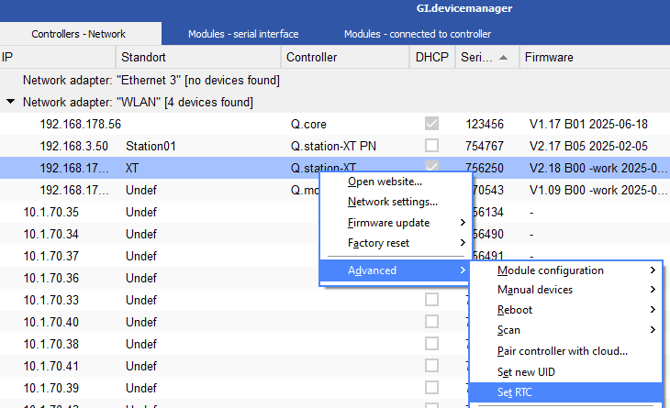 - Right click the controller and select Advanced --> Set RTC.