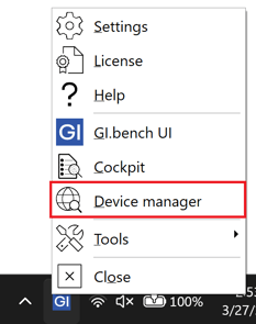 - Right-click on the GI symbol in the PC taskbar and open DeviceManager.