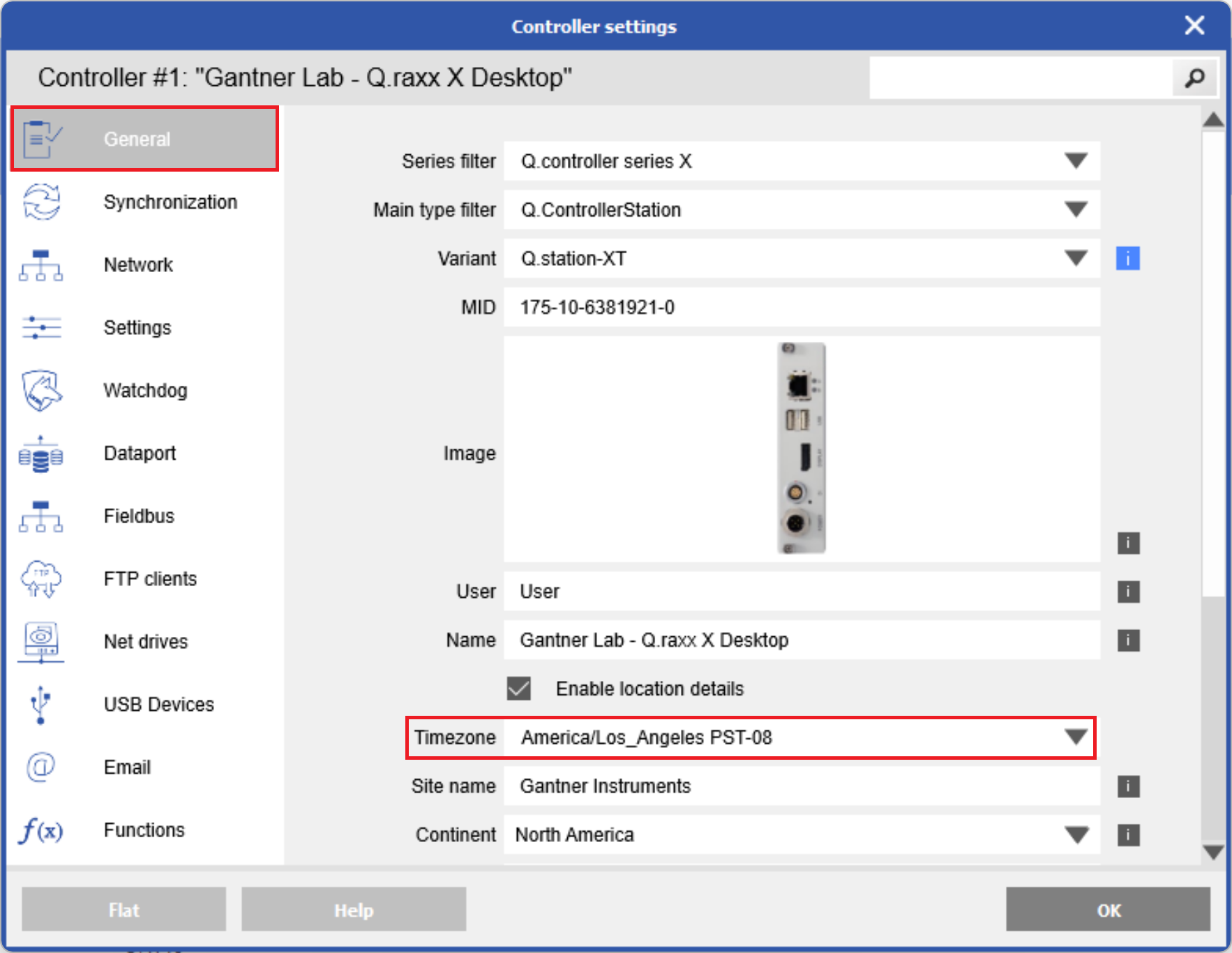 - (Optional) To adjust the time also for logged files from a controller logger open the controller settings. In the General section check the box for Enable location details and choose the correct timezone. Write changes.