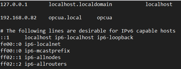 Another essential step is to include the OPC UA Server in the known Host file on the Q.station. This proves helpful in resolving name-related issues. If your setup relies solely on IP addressing, this procedure should suffice. Connect to the Q.station via SSH, navigate to /etc/hosts, and add the IP address along with the hostname if available.